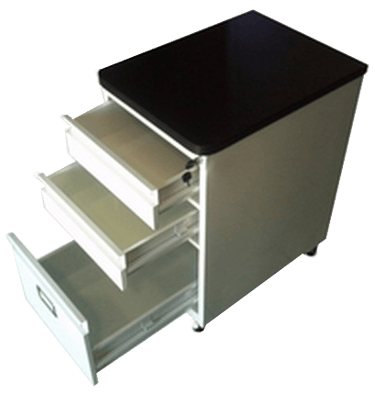 Medidas 1.00 mt. de alto x 45 cm. de fondo x 89 cm. de frente. Fabricado de lámina de 1/32". Incluye tres gavetas.