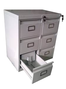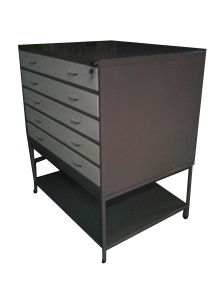 Medidas 1.02 mt. de alto x 70 cm. de fondo x 92.5 cm. de frente. Fabricado de lámina de 1/32". Incluye seis gavetas inferiores y chapas de cierre central.