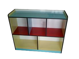Medidas de 1.20 mt. de frente x 40 cm. de fondo x 1.00 mt. de alto. Mueble tipo librera de madera, formica de colores con cinco casillas.