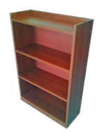 Medidas de 80 cm. de frente x 31 cm. de fondo x 1.21 de alto. Casillero de melámina tipo librera, con tres entrepaños, forrado de melamina.