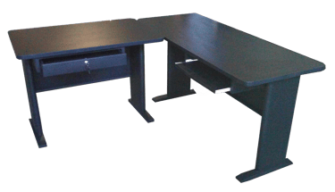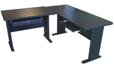 Medidas de 1.50 mt. de frente, 60 cm. de fondo, 77 cm. de alto. Fabricado de lámina de 1/32". Incluye una gaveta empotrada con cerrojo central, porta teclado modulo auxiliar.