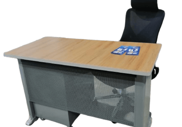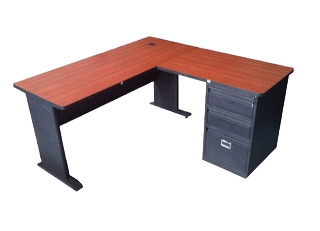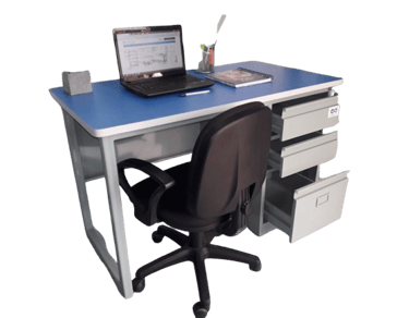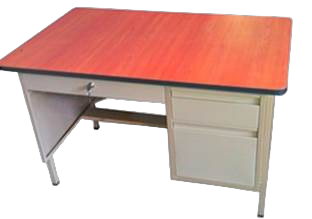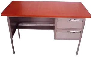 Escritorio de 1.20 m x 77 cm x 60 cm, fabricado en lámina original y aglomerado forrado en fórmica, con archivo robot incluido, frente con lámina perforada; no incluye silla.