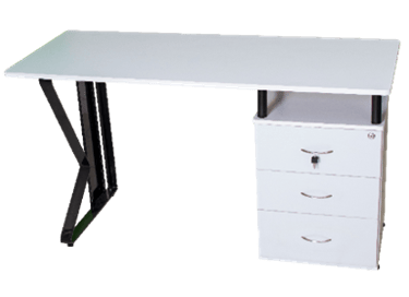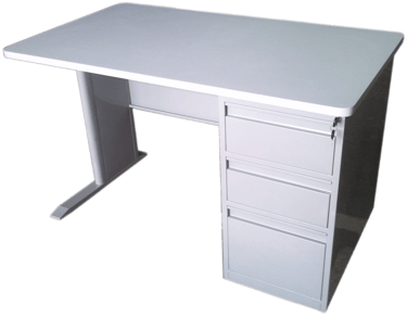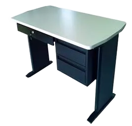 Escritorio de 1.20 m x 77 cm x 60 cm con estructura en acero y cubierta en fórmica, incluye tres gavetas laterales tipo archivo, patas con niveladores y acabado resistente.
