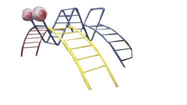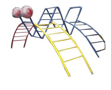Medidas de 2.80 mt. de frente x 1.00 mt. de fondo x 1.60 mt. de alto. Juego recreativo tipo araña, con lámina desplegada en laterales y lámina lagrimada en el piso.