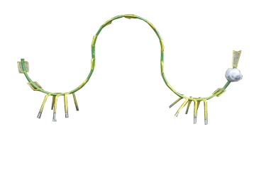 Medidas de 2.20 mt. de altura. Juego recreativo tipo gusano, figura de cabeza en fibra de vidrio, apto para niños de 5 a 12 años.