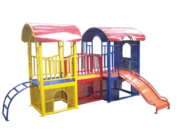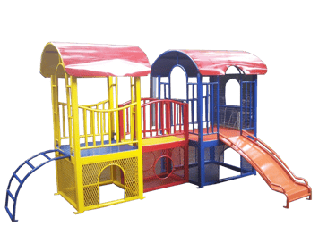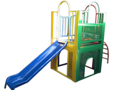 Medidas de 1.00 mt. de frente x 1.00 mt. de fondo x 1.60 mt. de alto. Juego deslizadero casita con lámina desplegada en laterales, lámina desplegada en el piso.