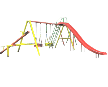Columpio con tobogán incluye sillas mecedoras, sube y baja, deslizadero tipo tobogán con base metálica, todo galvanizado.