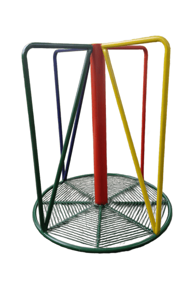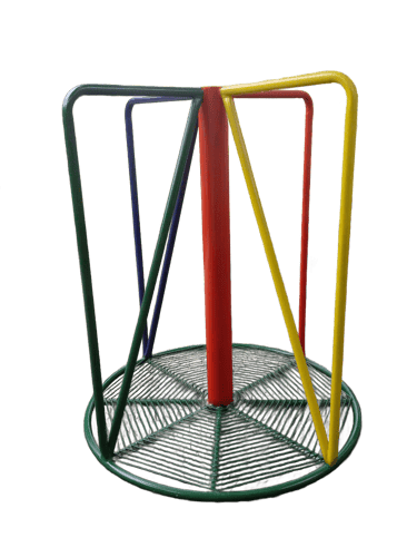 Medidas de 1.00 mt. de diámetro x 1.00 mt. de alto. Carrusel recreativo utilizado por niños de 5 a 12 años en áreas recreativas.