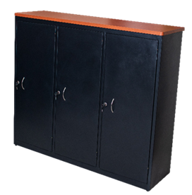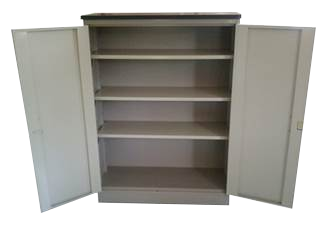 Medidas de 1.00 mt. de frente x 39 cm. de fondo x 1.40 mt. de alto. Fabricado de lámina de 3/64". Incluye tres entrepaños regulables, dos puertas con bisagras, juegos de llaves con chapa.