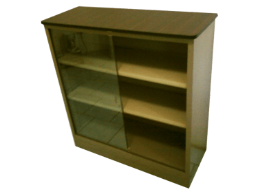 Medidas de 1.00 mt. de alto x 1.00 mt. de frente x 38 cm. de fondo. Fabricado de lámina de 1/32". Incluye puertas corredizas con vidrio con dos entrepaños.