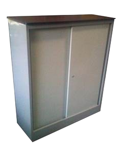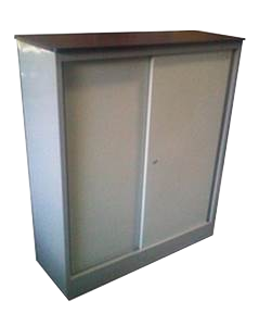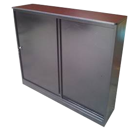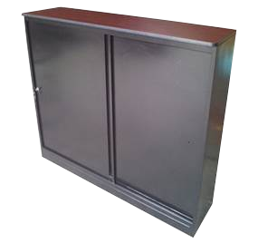 Medidas de 1.00 mt. de alto x 38 cm. de fondo x 1.00 mt. de alto. Fabricado de lámina de 1/32". Incluye entrepaños regulables, puertas corredizas.
