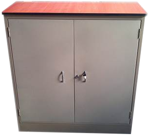Medidas de 1.00 mt. de alto x 1.00 mt. de frente x 38 cm. de fondo. Fabricado de lámina de 1/32". Incluye puertas de metal, dos entrepaños.