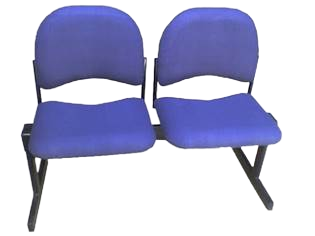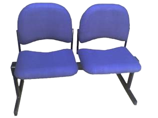 Silla de espera con tacos antideslizantes, sin brazo y plywood de ½ y espuma tapizada con tela americana de color azul.