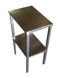 Medidas de 1.00 mt. de frente x 38 cm. de fondo x 41 cm. de alto. Incluye tacos antideslizantes, estructura y superficie de acero inoxidable.