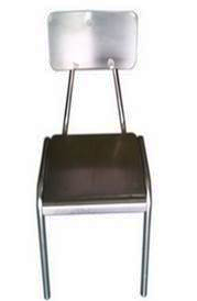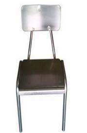 Silla de acero con tacos antideslizantes, fabricado de tubos de acero inoxidables.