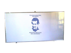 Medidas de 2.44 mt. de frente y 1.22 mt. de alto. Pizarra acrílica de melámina con porta borrador.