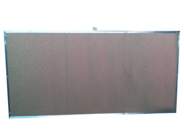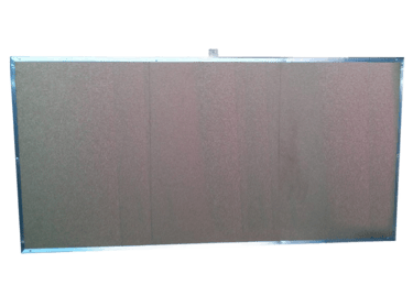 Medidas de 90 cm. de alto x 1.80 mt. de frente. Pizarra de corcho de 3/16, revestido con ángulo de aluminio de 3/4.