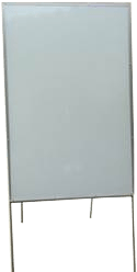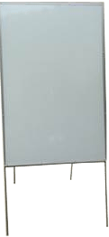 Medidas de 80 cm. de frente y 1.20 mt. de alto. Pizarra tipo rotafolio con 2 porta clip incluidos, patas extensibles (80 cm mas larga).